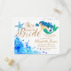 Cartão Postal De Convite Tinta azul aguamarina sereia doce texto dourado