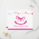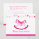 Chá de fraldas traz um cartão-postal de livro em cores cor-de-rosa e amarela. Perfeito para festas de chá de fraldas onde você gostaria que um convidado trouxesse um livro para criar uma biblioteca. Que melhor maneira de receber a sua recém-nascida no mundo do que mostrando-lhe o quanto ela é amada pelos seus amigos e familiares. Dar-te presentes especiais para ti e para a tua bebê durante anos. Pintura de aquarela de cavalo Rocking por e design por Sarah Trett.