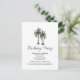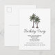 Tropical 30th Birthday party invitation postcard, with a palm trees illustration and script design. With customizable text, you add your information. Great for planning a beach inspired birthday milestone.