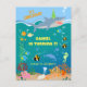 Cartão Postal De Convite Tubarão sorridente sob o mar menino festa de anive
