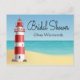 Ponha o tom divertido da sua chá de panela com este divertido farol náutico vermelho e branco numa praia com um convite para chás de casamento bonito de fundo do céu azul. Este convite encantador é perfeito para você verão, praia, oceano ou chá de panela de tema náutico. Role para baixo para ver os produtos correspondentes que você pode desfrutar.