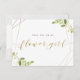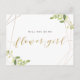 Cartões de convite de casamento personalizados "Você Será Minha Menina de Flores" com desenho de folhagem em aquarela e caligrafia em folha dourada.