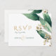 Folhas botânicas de cor d'água pintadas na russa em verde-limpador da floresta, moderno, elegante e romântico, cartões postais RSVP de excelente para casamento rústico, casamento no campo e casamento de jardim em primavera e verão. Veja todas as peças correspondentes na coleção abaixo.