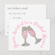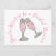 Basta personalizar com suas informações! O design do cartão postal apresenta uma ilustração original feita à mão de um copo de champanhe rosa borbulhante. Ótimo para despedida de solteira, chá de noiva, casamento ou noivado.