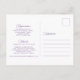 Um belo e elegante Cartão-postal de convite para casamento, com um design de arte floral de flor selvagem num tema de cor lilás/roxo. É usada uma fonte impressionante de script que funciona bem e parece na moda e sofisticada. Esta peça está pronta para você personalizar com os detalhes do seu dia especial. As cores e fontes podem ser alteradas se você desejar ou sair conforme mostrado aqui. Parte de uma coleção cada vez maior, por favor, navegue na Suíte de Casamento Lilac Floral de Flor Selvagem para ver os itens correspondentes.