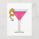 Cartão postal de copo de cocktail rosa com torção de laranja