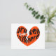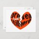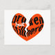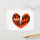 Cartão postal com coração vermelho dizendo "Partido, mas ainda aqui". Deixe transparecer as suas emoções com este cartão e mostre às pessoas que um coração partido não pode impedi-lo de nada.