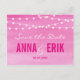 O design de casamento Luzes de Corda Aquarela foi criado por Aubergine e Purple. Este design moderno inclui uma corda de luzes com um deslumbrante fundo de aquarela fúcsia.