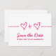 Cartão postal de data de salvamento da equação do coração fofo e caprichoso em magenta, apresentando uma divertida equação matemática que "une" dois corações/pessoas. Este design nerd é uma escolha encantadora para um casal que ama matemática ou qualquer casal que queira algo simples, mas com um toque de capricho. Fácil de personalizar, basta adicionar os detalhes do seu casamento nos campos de texto fornecidos. Clique em "Personalize" para encontrar mais opções de personalização.