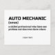 Este cartão postal de definição hilária de mecânico de automóveis é uma maneira perfeita de celebrar qualquer pessoa que trabalhe com carros, motores e reparos. Ótimo para oficinas mecânicas, colegas de trabalho ou qualquer pessoa que aprecie um riso sobre o trabalho árduo que os mecânicos fazem. Faz um presente atencioso e engraçado para celebrações no escritório. Uma ótima escolha para cartões postais de mecânico de automóveis e presentes de humor.