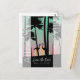 Design moderno com flâmingo, pôr do sol e palmeiras. Por favor, personalize o texto em ambos os lados. (Nomes, data, local, etc.) Apropriado para o anúncio de casamentos para que os convidados possam salvar a data a tempo.