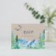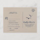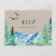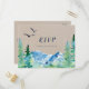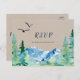 Este cartaz do cardápio da Montanha Rochosa é perfeito para um casamento ao ar livre. O design apresenta uma paisagem de natureza selvagem pintada, azul e verde, com pinheiros de aquarela, pássaros e montanhas em um fundo falso de papel kraft claro. Este cartão postal de resposta do casamento pergunta aos convidados qual refeição eles gostariam na sua recepção. Por favor, observe que isto não está impresso em papel kraft real. É um gráfico de alta qualidade feito para parecer papel kraft.