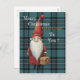 Cartões de natal Para Você. Um Gnomo de Natal com um fundo xadrez. O cartão é vazio. Personalize com seu próprio texto.