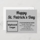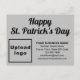 Rua de cinzas. Cartão postal de feriado Patrick que pode personalizar carregando o logotipo da sua empresa, digitando o nome da sua empresa, endereço, número de telefone, correio eletrônico e site ou página de mídia social. Personalize-o e dê-o aos seus clientes ou clientes para cumprimentá-los nesta Rua. Dia do Patrick. Um cartão postal de feriado para anunciar também a sua empresa ou promover o seu nome de marca. Um cartão postal de feriado personalizável que você pode incluir em seus materiais de marketing para criar reconhecimento de nome de marca. Verifique a aparência após carregar o logotipo e digitar textos. Se a aparência lhe agrada, você pode colocar seu pedido agora. Se você precisar redimensionar e reposicionar o logotipo e as mensagens para ajustado neste cartão postal de feriado, ajuste na ferramenta design. Você também pode alterar a cor do plano de fundo, a cor da fonte e o estilo da fonte na ferramenta design. Feliz Rua, Dia de Patrick! Desejando-lhe o melhor de sorte, alegria e mais vendas neste feriado.