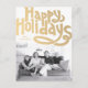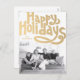 Personalize este na moda elegante e divertido cartão postal vertical de Natal Foto, projetado com grandes letras em negrito, texto em ouro falso Feliz Feriados em branco. Observe que o ouro é um impressão de cor e não é uma folha de ouro. Substitua a imagem modelo horizontal por sua e altere todas as informações de modelo em ambos os lados. Esta design tem um texto: "Desejando-lhe um feriado alegre e um ano novo cheio de paz e amor." mas você pode mudar as palavras com suas próprias palavras. Fotografia © Storytree Studios, Stanford, CA