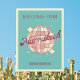 Marrakech Marrocos Retro Vintage Design com uma bola de disco a rosa e matizes de pêssego de damasco. Este belo cartão-postal é um cartão de boas-vindas perfeito para residentes, visitantes, turistas ou fãs de Marraquexe.