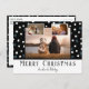 3 Foto Colagem Moderna de Preto Branco Padrão Feliz Cartão de Natal Feliz. Padrão quadrado preto e branco. Adicione 3 fotos e personalize o texto na frente e no verso.