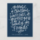 Envie cartões de natal mágicos para amigos e família com o nosso cartão postal festivo de feriado não fotográfico. A frase "A magia do Natal nunca acaba, seus maiores presentes são família e amigos" é exibida em um roteiro branco, com letra branca, com fundo de marinho. Personalize a frente do cartão postal de feriado bonito, adicionando seu nome e o ano. O cartão postal reverte para incluir seu endereço de retorno e mensagem personalizada.