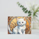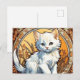 Cartão postal com um gato no estilo de Alphonse Mucha! Este gatinho branco fofo parece adorável para o espectador. Flores decoram a cena. Um presente perfeito para amantes de gatos e colecionadores de Art Nouveau!