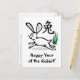 Este pequeno coelho branco está a caminho de celebrar o seu Ano Novo Chinês. Design de LD Gonzalez, 2022.