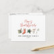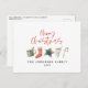 Uma design festiva divertida com a aquarela favoritos de inverno - chocolate quente, cana doce, estocagem. Feliz Natal em letra contemporânea, perfeito para celebrar o feriado. pode ser editado, parte de uma coleção.