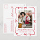 Celebre as férias com este Cartão-postal de Natal de Arcos Vermelhos Desenhados à Mão Branca. Sua foto é colocada sobre um fundo branco e enquadrada com arcos e fita vermelho e lúdicas. "Feliz Natal" aparece em um roteiro caprichoso com seu nome de família e ano mostrado abaixo. O verso oferece espaço para seu endereço de volta e mensagem de feriado, fazer que este seja um cartão postal de Natal animado e clássico.