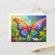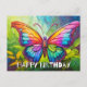 Este cartão postal exclusivo ilustra uma borboleta flutuante colorida. Esta saudação de aniversário seria verdadeiramente maravilhosa para amigos, familiares e colegas de trabalho.