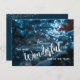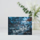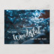 Uma bela árvore de Natal coberta de neve reflete as luzes azuis da noite e apresenta "A época mais maravilhosa do ano" na frente e seu cartões de natal pessoal e nomes na parte de trás desses cartões postais de feriado.