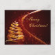 Cartão bonito com a árvore de Natal dourada e texto editável do cumprimento no fundo estrelado vermelho escuro.