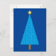 Cartão postal com uma tomada moderna simplificada de um clássico motif de árvore de Natal, azul-cerulano, estrelas texturizadas de cetim em aqua com fundo azul-cobalto