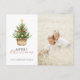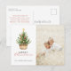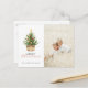 Cartão postal de Natal simples e rústico com árvore de pinheiro de Natal em aquarela em uma cesta. Combinado com tipografia moderna e manuscrita e sua foto favorita.
