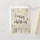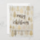 Os pinheiros de Natal Dourados e prateados são uma peça de padrão baseada num design de aquarela vintage. Uma floresta de ouros elegante para o seu cartão de posto de férias. Você pode editar a saudação "Feliz Natal" se quiser. Certifique-se de alterar o exemplo de nomes "de" e o ano.