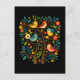 Cartão Postal De Festividades Aves e Flores Arte Folclórica Escandinava