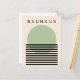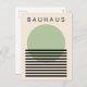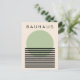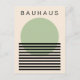 Um design de arte moderna minimalista no estilo Bauhaus de um sol verde com linhas pretas horizontais sobre fundo bege.