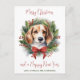 Cartão Postal De Festividades Beagle Dog Personalizado Wreath Feliz Natal