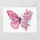 Cartão Postal De Festividades Borboleta Flor com Sakura Rosa