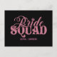 Diseño con Frase "Bride Squad", sencilla y elegante, Postal. con tipografia en color rosa, El lema, nombre y rol se puede personalizar fácilmente con los nombres de tu fiesta nupcial, No lo piense y adquiera las suyas ahora.