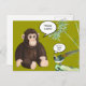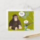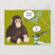 A Brown Easter Monkey talking to a pheasant standing on a rock. with a grass green background.with happy easter in black text.