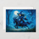 Cartão Postal De Festividades Bruxa cavalgando uma cabra através da floresta lua