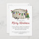 Uma bela saudação de Natal da família acampada na estrada para as férias. Câmera bonita com luzes de Natal.
