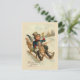 Desenhado por Susan Epps Oliver. Cartão de Ano Novo francês Vintage mostrando um anjo-menino cavalgando em um trenó e soprando a buzina. Ele está carregando uma vara de pesca e vários outros presentes embrulhados. Parece que está se divertindo!