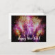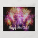 Cartão postal adornado com, design de fogos de artifício de Ano Novo.
