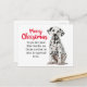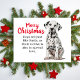 Este cartão de feriado Dalmático adorável tem tudo a ver com espalhar alegria de férias! É a maneira perfeita de fazer a temporada de alguém brilhar com um pouco de amor canino e magia de férias. É excelente para enviar desejos calorosos, assim como Papais noeis! Faça seus entes queridos se sentirem especiais este ano.