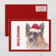Uma fotografia deslumbrante de um Pastor Alemão com neve caindo ao redor e um chapéu de Papai Noel adorna a frente deste lindo cartão de férias. Verdadeiramente, um cartão lindo e único, especialmente para os amantes de cães em sua vida! Se você ama o cão Pastor Alemão, qual é a melhor maneira de enviar saudações de Natal? Em vez de enviar cartões de cumprimentos tradicionais, seja original (e ecológico) e compartilhe suas saudações com um cartão postal!