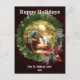 Fótulo de Feriado Personalizado de Feriado da Terra Ocidental, coroa de estilo Ocidental com sapato de cavalo, fita e decoração de bagas. O Cartão Lê feriados felizes por todos da "Família Yourname". Todo o texto é ajustável. Uma Opção de Foto Central.