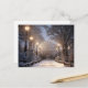 Árvore beijada de neve e estrada sob um céu. Flocos de neve caídos tecem uma tranquila noite de inverno. Ideal para cartões de Natal. Abraça a magia da estação com esta cena encantadora.