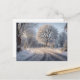 Árvore beijada de neve e estrada sob um céu. Flocos de neve caídos tecem uma tranquila noite de inverno. Ideal para cartões de Natal. Abraça a magia da estação com esta cena encantadora.