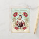 Cartão de Natal de Marie Antoinette com Pássaro e Rosas Vermelhas