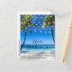 Cartão de Natal de Praia Costeira Tropical - apresenta uma bela praia tropical, com luzes brilhantes de cordas e bonito tipografia de guiões. Cartão-postal de Natal faz parte de uma coleção.