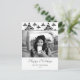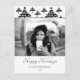 Cartão postal de foto de Natal elegante e moderno. O cartão é em esquema de cores branco e preto - com foto, desejo de Feliz Natal, sua nota pessoal e número do ano em caligrafia preta da moda. O padrão de árvore de Natal abstrata preta está na frente e no verso do cartão. Insira sua foto favorita no modelo - a foto em preto e branco combina muito bem com o design. Personalize este cartão com seu nome e número do ano. É um ótimo design para qualquer pessoa, especialmente para solteiros.